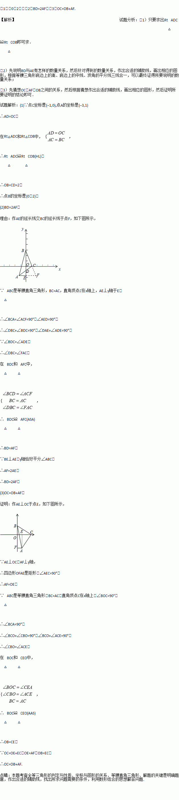 (1)如图①若AD于垂直x轴,垂足为点D.点C坐标是(﹣1,0),点A的坐标是(﹣3,1),求点B的坐标.