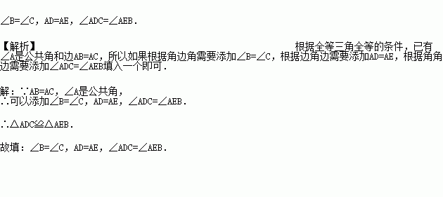 如图AB=AC,请你添加一个适当的条件:______________,使△AEB≌△ADC.