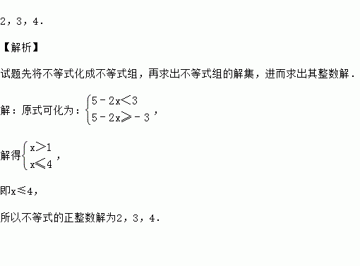 不等式﹣3≤5﹣2x<3的正整数解是 .