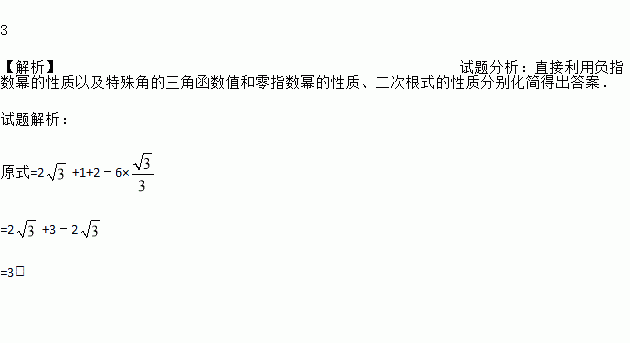 计算: +(π﹣2018)0+( )﹣1﹣6tan30°.