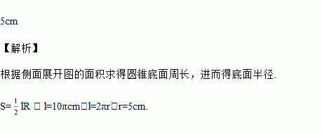 圆锥的母线长为 13cm,侧面展开图的面积为 65πcm2,这个圆锥的底面半径为___________ .