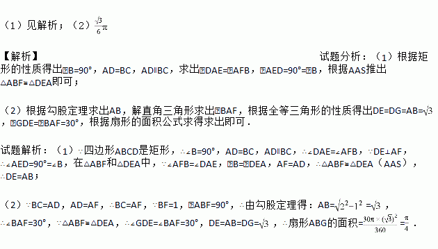 (2)以A为圆心,AB长为半径作圆弧交AF于点G,若BF=FC=1,求弧长BG.