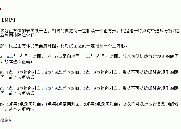 骰子是一种特别的数字立方体(如图),它符合规则:相对面的点数之和总是7,下面四幅图中可以折成符合规则的骰子的是( )