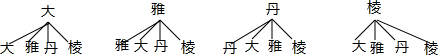 共有16种等可能的结果数,其中能组成“大雅”或“丹棱”的结果数为4,