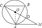 分析 (1)连接OA,根据圆周角定理求出∠AOC=120°,得到∠OCA的度数,根据切线的性质求出∠M的度数,根据等腰三角形的性质得到答案;