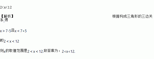 如果一个三角形的三条边长分别为5,7,x,则x的取值范围是______________.