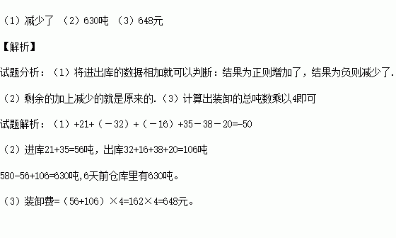 (3)如果进出的装卸费都是每吨4元,那么这6天要付多少元装卸费?