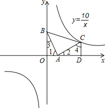 如图:等腰直角△ABC放置在直角坐标系中,∠BAC=90°,AB=AC,点A在x轴上,点B的坐标是(0,3),点C在第一象限内,作CD⊥x轴.