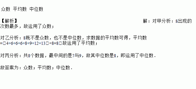 三个厂家在广告中都称该产品使用寿命为8年,根据调查结果判断厂家在广告中分别运用了平均数、众数、中位数中哪一个集中趋势的特征数