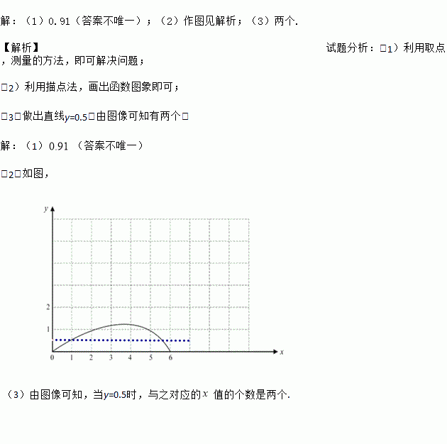 (1)通过取点、画图、测量,得到了x与y的几组值,如下表: