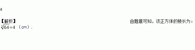 一个正方体木块的体积是64㎝3,则它的棱长是________㎝。