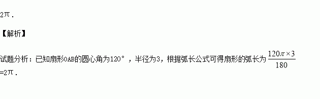 如图,扇形OAB的圆心角为120°,半径为3,则该扇形的弧长为 .(结果保留π)