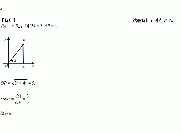 如图,平面直角坐标系内有一点P(3,4),连接OP,则cos α等于( )