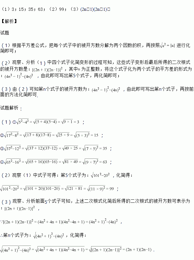 (3)仿照①,②,③,④,⑤,写出第n个二次根式,并化简.