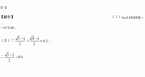 比较下列各组数大小:(Ⅰ)π________3.14 (Ⅱ)