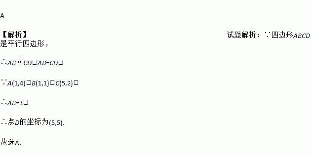 如图,□ABCD的顶点坐标分别为A(1,4),B(1,1),C(5,2),则点D的坐标为( )