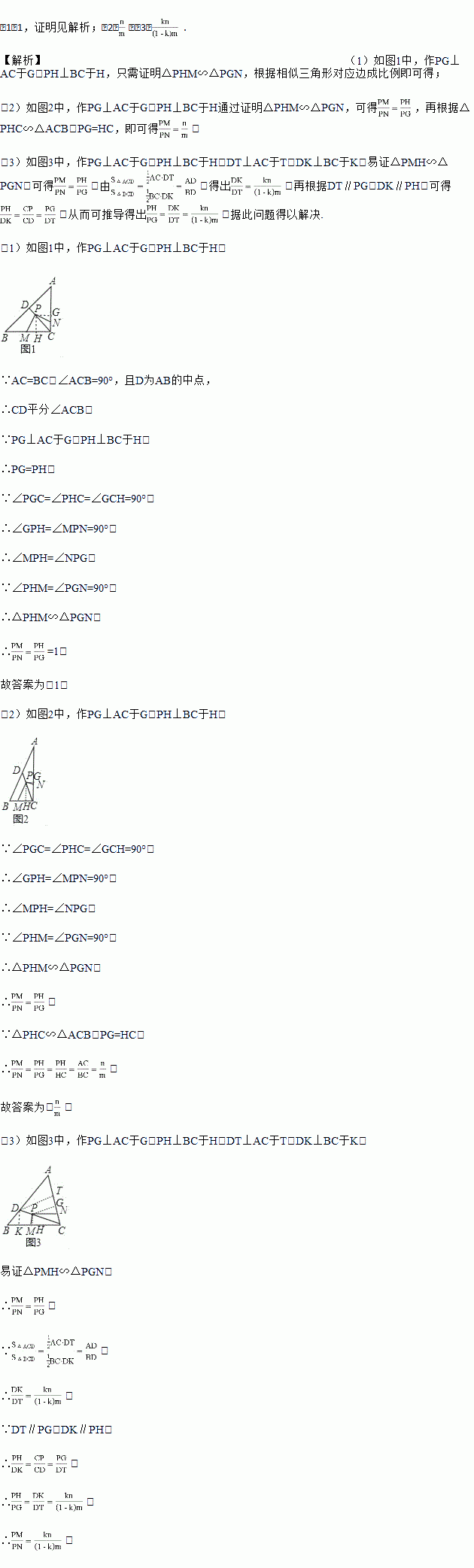 (1)如图1,若AC=BC,∠ACB=90°,且D为AB的中点时,则