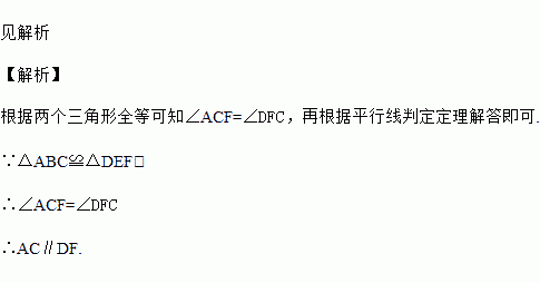 已知,如图,△ABC≌△DEF,求证:AC∥DF.