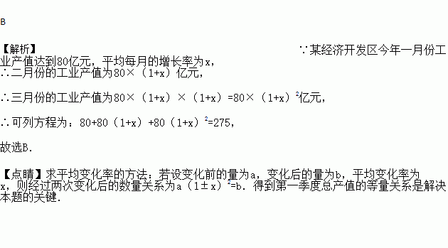 某经济开发区今年一月份工业产值达到80亿元,第一季度总产值为275亿元,问二、三月平均每月的增长率是多少?设平均每月的增长率为x,根据题意所列方程是( )