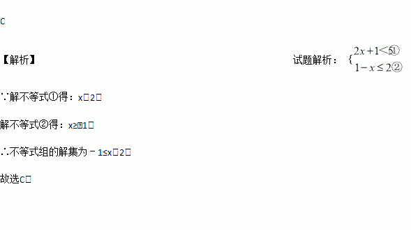 A. x<2 B. x≥1 C. ﹣1≤x<2 D. 无解