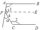 分析:过点F作EF∥AB,由平行线的性质可先求出∠3与∠4,再利用平角的定义即可求出∠α.