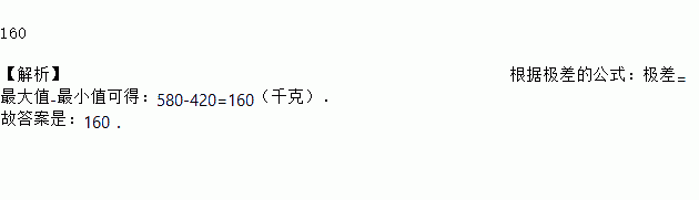 某水果店1至6月份的销售情况(单位:千克)为450、440、420、480、580、550,则这组数据的极差是____千克.