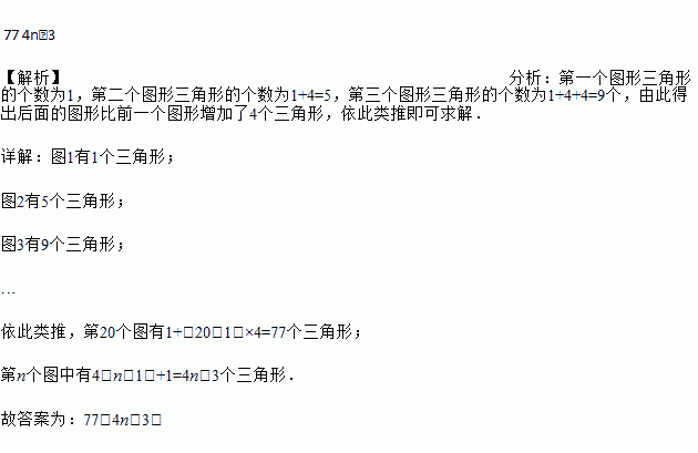 按上面方法继续下去,第20个图有_____个三角形;第n个图中有_____个三角形.(用n的代数式表示结论)