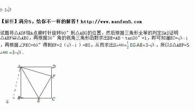 如图,正方形中,已知,点,分别在、上,且,,则的面积为________.