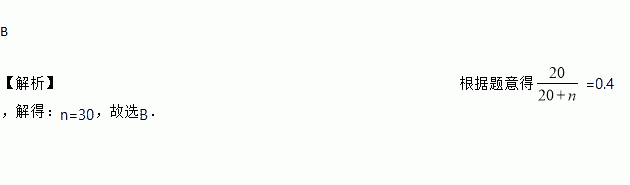 已知不透明的袋中只装有黑、白两种球,这些球除颜色外都相同,其中白球有20个,黑球有n个,随机地从袋中摸出一个球,记录下颜色后,放回袋子中并摇匀,再从中摸出一个球,经过如此大量重复试验,发现摸出白球的频率稳定在0.4附近,则n的值约为( )