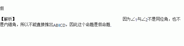 如图,若∠1=∠2,则AB∥CD,这是_____命题(填“真”或“假”).