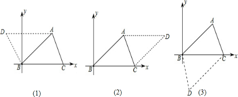 分析:因为过A、B、C三点可作三个平行四边形,所以D点的位置分三种情况,根据平行四边形的性质和线段平移即可求解.