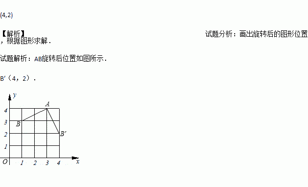 如图,在平面直角坐标系中,将线段AB绕点A按逆时针方向旋转90°后,得到线段AB′,则点B′的坐标为 .