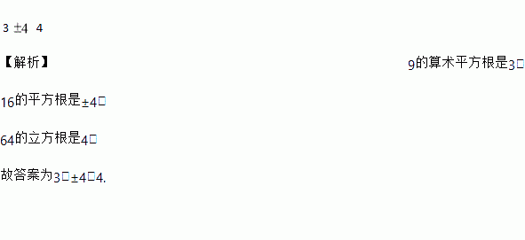 9的算术平方根是_____;16的平方根是_____;64的立方根是_____.