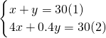 分析:设买笔记本x本和练习本y本,根据题意知:笔记本和练习本共30本(x+y=30);30元钱买笔记本和练习本,每个笔记本4元,每个练习本4角(4x+0.4y=30),列出方程组并解答.
