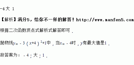 抛物线y=﹣3(x+4)2+1中,当x=________时,y有最________值是________.