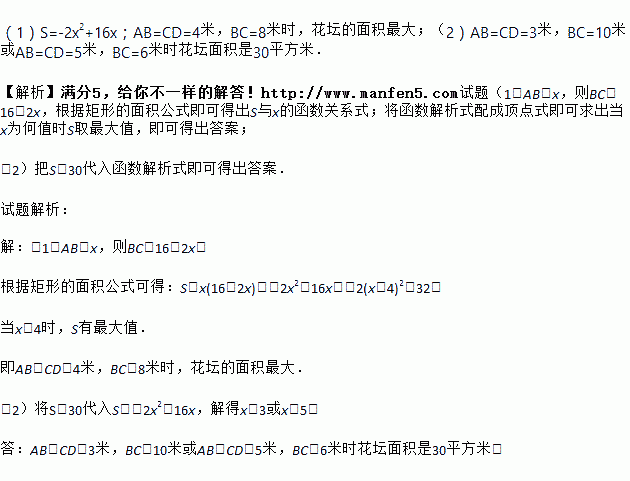 如图所示,某小区要用篱笆围成一矩形花坛,花坛的一边用足够长的墙,另外三边所用的篱笆之和恰好为