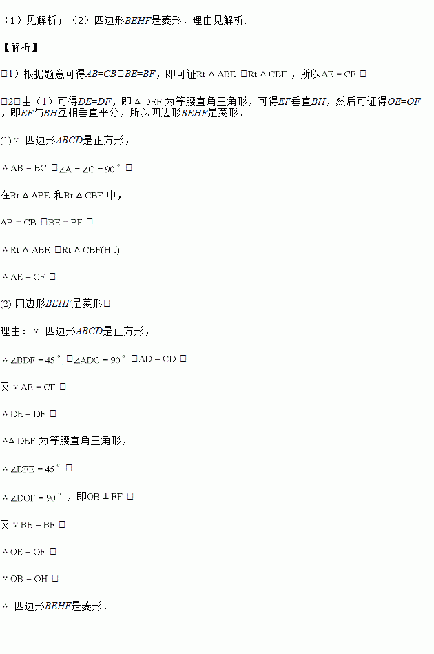 试判断四边形BEHF是什么特殊的四边形,并说明理由.