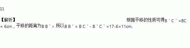 如图,将△ABC水平向右平移了acm后,得到△A'B'C',已知BC = 6cm,B C'=17cm,那么a = _____cm.