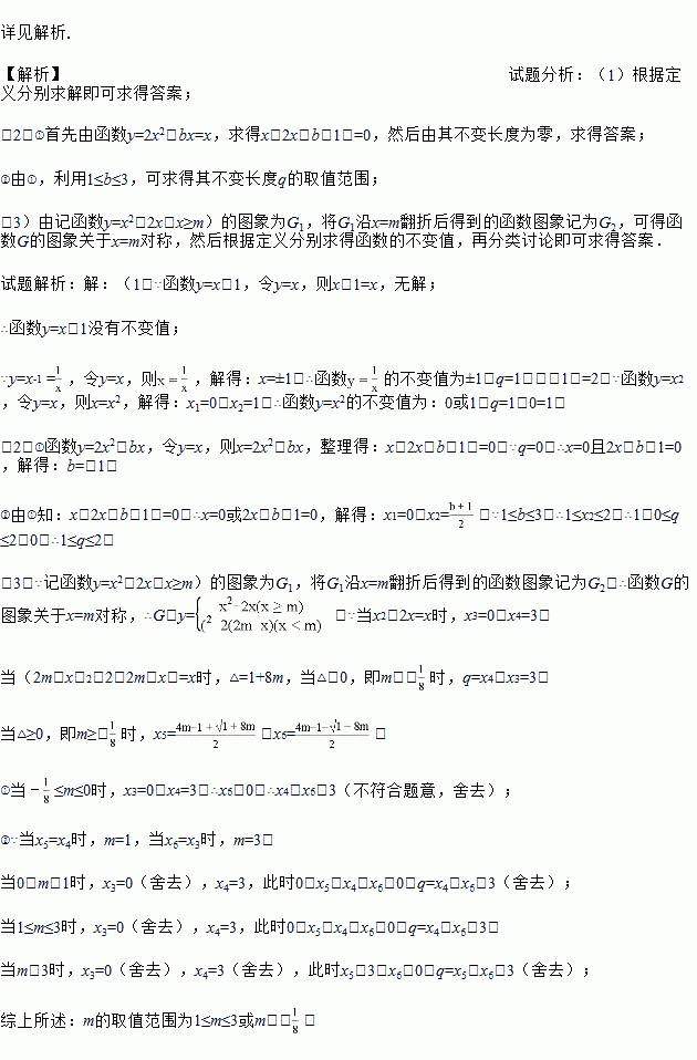 (3) 记函数y=x2-2x(x≥m)的图象为G1,将G1沿x=m翻折后得到的函数图象记为G2,函数G的图象由G1和G2两部分组成,若其不变长度q满足0≤q≤3,则m的取值范围为 .