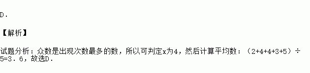 如果一组数据2,4,x,3,5的众数是4,那么该组数据的平均数是( ).