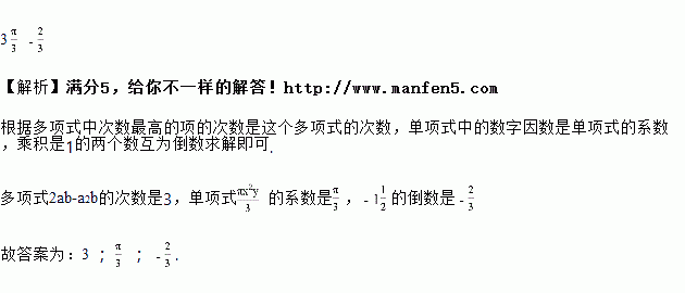 多项式2ab-a2b的次数是_________,单项式 的系数是________,的倒数是_____.