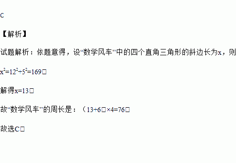 图①是我国古代著名的“赵爽弦图”的示意图,它是由四个全等的直角三角形围成的.若AC=6,BC=5,将四个直角三角形中的边长为6的直角边分别向外延长一倍,得到图②所示的“数学风车”,则这个风车的外围周长是( )