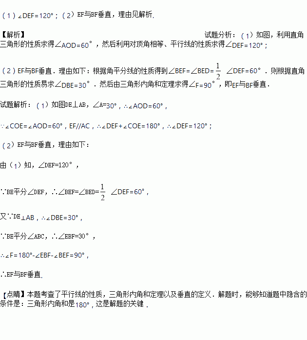 (2)连接BE,若BE同时平分和,问EF与BF垂直吗? 为什么?
