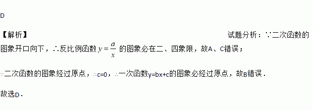 二次函数y=ax2+bx+c的图象如图所示,则反比例函数与一次函数y=bx+c在同一坐标系中的大致图象是( )