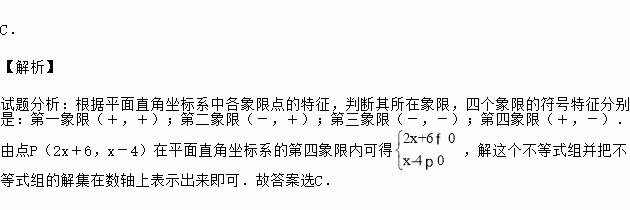 如果点P(2x+6, x-4)在平面直角坐标系的第四象限内,那么x的取值范围在数轴上可表示为( )