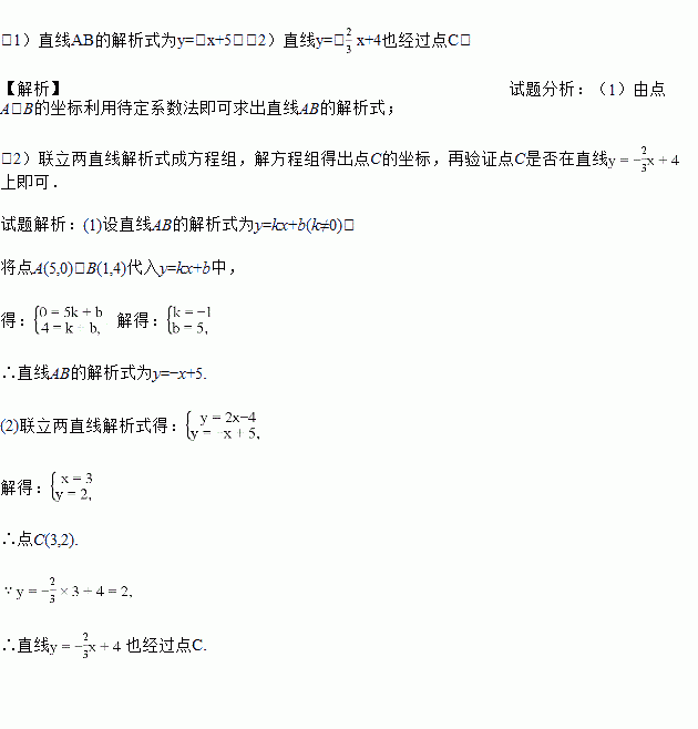(2)若直线y=2x﹣4与直线AB相交于点C,请问直线y=﹣x+4是否也经过点C?