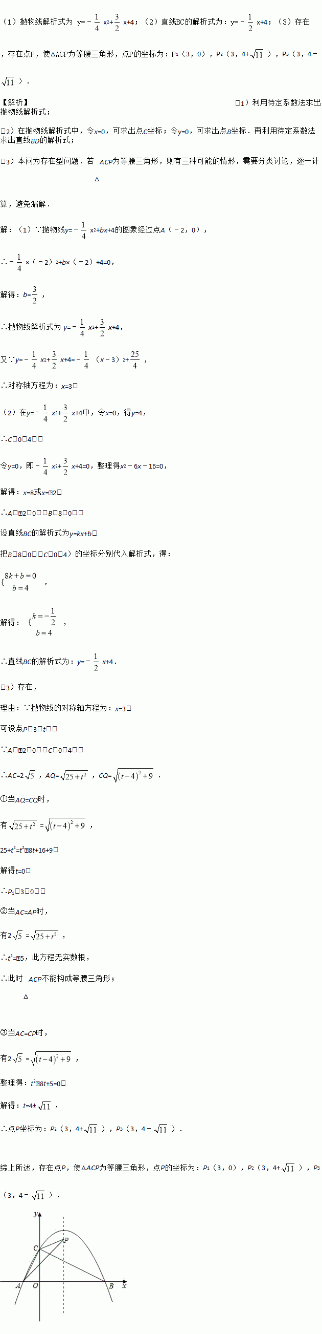 (3)在抛物线的对称轴上是否存在点P,使△ACP为等腰三角形?若存在,求出符合条件的P点坐标;若不存在,请说明理由.