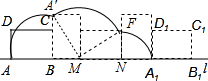 已知矩形ABCD的边AB=4,AD=3,现将矩形ABCD如图放在直线l上,且沿着l向右作无滑动地翻滚,当它翻滚到位置A1B1C1D1时,计算: