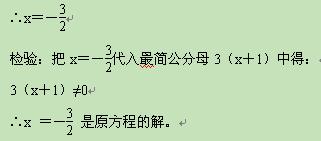 (2)方程的左右两边同时乘以最简公分母3(x+1)得:3x=2x+3x+3