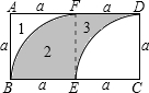 分析:先根据题意得到扇形BEF的面积等于扇形CED的面积,即图形1的面积等于图形3的面积,通过割补的方法可知阴影部分的面积=图形1的面积+图形3的面积=正方形ABEF的面积.